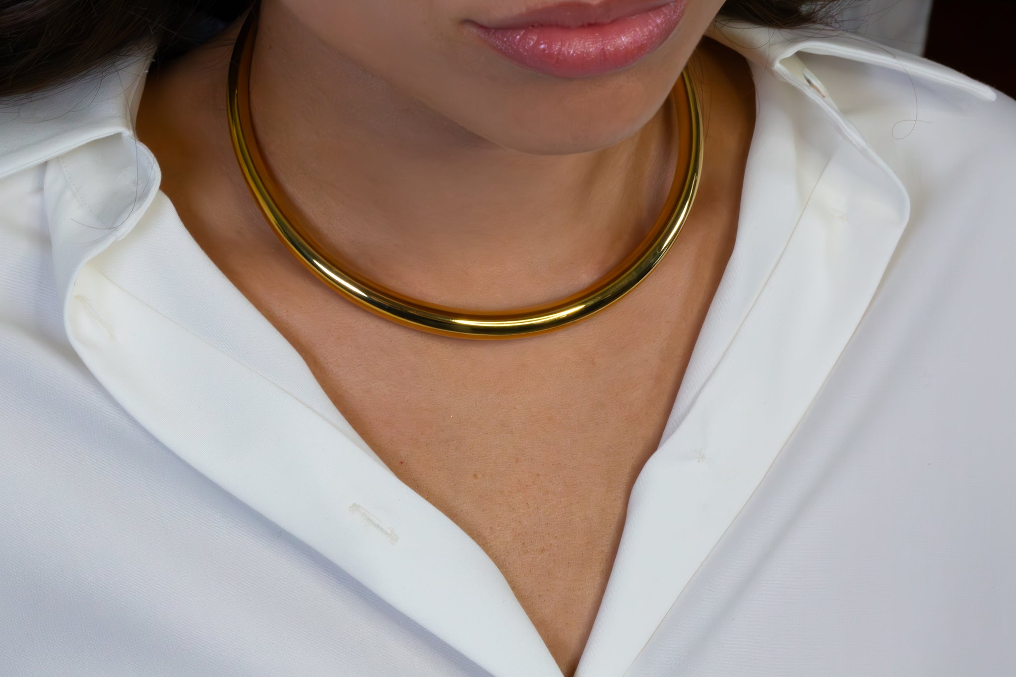 A sleek mixed-metal collar necklace crafted in gold and silver tones. Designed to sit perfectly at the neckline for a modern, effortless statement—ideal for layering or wearing solo.